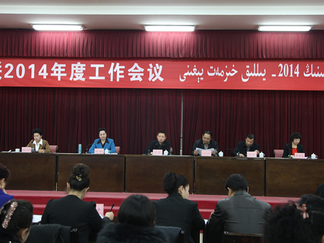 为深入贯彻落实党的十八届三中全会、自治区八届六次全委(扩大)会议、自治区妇联工作会议和地委扩大会议精神,总结2013年全地区妇女工作,安排部署2014工作,1月20日,和田地区妇联召开2014年度工作会议。地委委员、地区纪检委书记何震,人大副主任吐尔洪·扎克尔,地区政协工委副主任阿不拉·库尔班等领导出席了会议。地区妇联领导、各县(市)分管领导、地直单位分管妇女工作的领导,各县(市)、各乡镇(街办)妇联主席,受表彰的先进集体代表、先进个人及新闻媒体的同志共200余人参加了会议。会议由行署副专员古丽尼沙汗·买提尼牙孜同志主持。