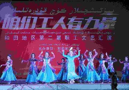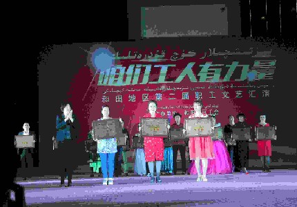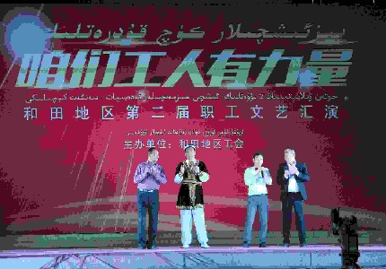 4月28日晚,和田地区工会主办的“咱们工人有力量·凝心聚力新作为”庆五一职工文艺汇演在团结广场隆重举行。全国、自治区、地区级劳动模范和先进工作者代表及地直各单位职工,中央、自治区驻和单位、企业职工到晚会现场观看了晚会,地委、人大、行署、政协四套班子领导、各县市主管工会工作的领导应邀出席晚会,与全地区各族职工和人民群众共同欢庆“五一”国际劳动节。