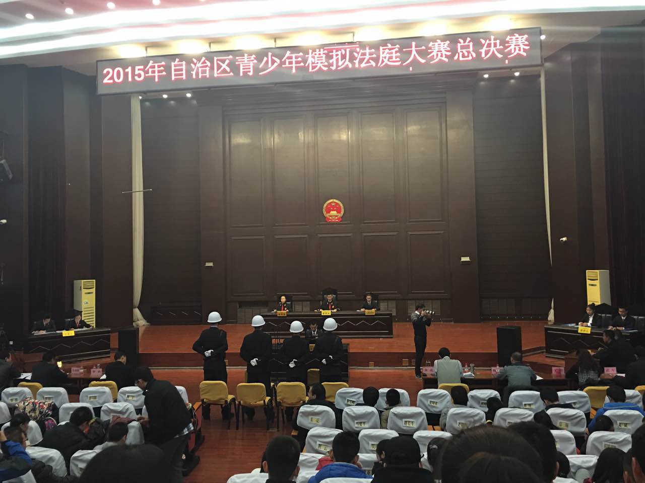 引导全区各族青少年树立法治思维,增强法治意识,有效预防青少年违法犯罪,由自治区综治委预青专项组、自治区综治办、自治区高级人民法院、自治区人民检察院、自治区团委、自治区司法厅、自治区律协等单位联合主办,自治区团委、自治区高级人民法院承办的2015年自治区青少年模拟法庭大赛总决赛,11月28日、29日在自治区高级人民法院的大法庭中精彩上演。