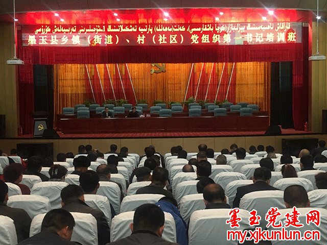 近日,墨玉县在县委大礼堂举办2017年乡镇(街道)、村(社区)党组织第一书记培训班,通过邀请地区农办副主任、地区驻墨玉县“访惠聚”驻村工作及基层基础常态化督查组组长谢安新,和田日报社副总编辑、驻墨玉县芒来乡布都休克村第一书记项胜清,地委基层办副主任、社区科科长、组织科科长、党代表联络办主任唐金良进行专题授课。全县19个乡镇(街道)、384个村(社区)党组织第一书记参加培训。