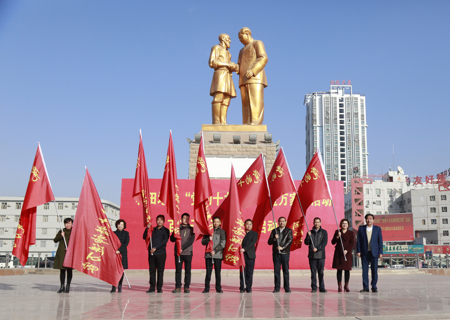 11月20日上午,地区在和田市团结广场举行“党的十九大精神进万家”活动启动仪式,掀起学习宣传贯彻十九大精神的热潮,号召全地区各族干部群众把智慧和力量凝聚到落实十九大提出的各项任务上来,开启新时代,踏上新征程,开创新局面,为实现和田社会稳定和长治久安而努力奋斗。