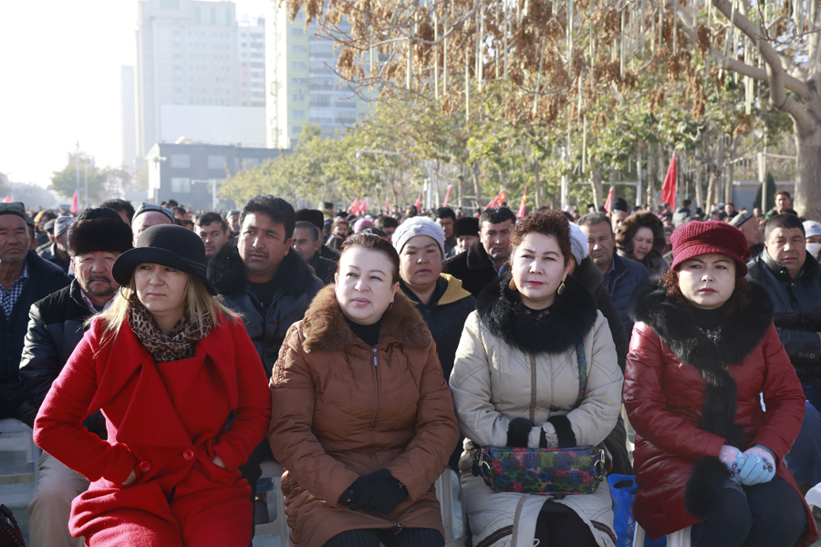 来自地直各单位、和田市、和田县的6000多名各族干部群众在主会场出席大会