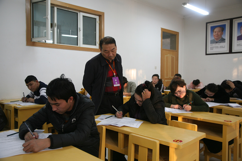 上午10点整,笔试准时开考。自治区“访惠聚”办赴和田“访惠聚”驻村工作考核督导组组长迟文杰带队现场开展巡视,确保笔试公平公正。