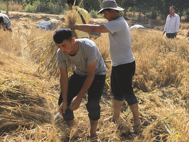 干劲十足 全心全意为民解忧。针对外出务工人员多,留守人员大多为妇女、儿童、老人等情形,一支支志愿者服务队走街串巷、走村入户、上屋顶、下田地、早出晚归,帮助缺乏劳动力的家庭、有困难的群众在田间除草追肥、浇地修枝、收割麦子、修安居富民房等,定期对村(社区)的孤寡老人、四老人员等嘘寒问暖、做家务等解决他们在生产生活中遇到的困难。截止目前,特别是在夏收期间,各级“访惠聚”驻村工作队购置配备便携式收割机1510多台。田间地头,一名名志愿者们精神饱满、挥汗如雨,共帮助3126户困难群众收割麦子3400多亩。
